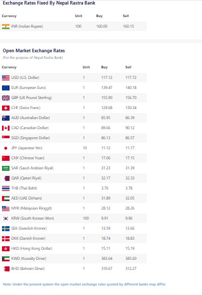 त्यस्तै, एक यूरोपियन यूरोको बिक्रिदर १ सय ३९ रुपैयाँ ४७ पैसा रहेको छ भने खरिददर १ सय ४० रुपैयाँ १८ पैसा रहेको छ । एक यूके पाउन्डको बिक्रिदर १ सय ५५ रुपैयाँ ९० पैसा र खरिददर १ सय ५६ रुपैयाँ ७० पैसा रहेको छ।