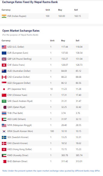 त्यस्तै, एक यूरोपियन यूरोको बिक्रिदर १ सय ३७ रुपैयाँ ८३ पैसा रहेको छ भने खरिददर १ सय ३८ रुपैयाँ ५४ पैसा रहेको छ । एक यूके पाउन्डको बिक्रिदर १ सय ५० रुपैयाँ २७ पैसा र खरिददर १ सय ५१ रुपैयाँ ४ पैसा रहेको छ ।