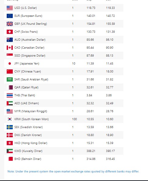 त्यस्तै, युरो एकको खरिददर १ सय ४० रुपैयाँ ०१ पैसा र बिक्रीदर १ सय ४० रुपैयाँ ४२ पैसा रहेको छ । यसैगरी पाउण्ड एकको खरिददर १ सय ५४ रुपैयाँ ८१ पैसा र बिक्रीदर १ सय ५५ रुपैयाँ ५९ पैसा रहेको छ ।