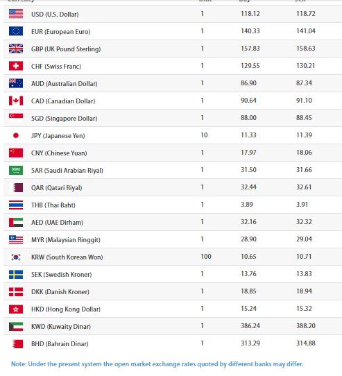 काठमाडौं । नेपाल राष्ट्र बैंकले आज अमेरिकी डलर एकको खरिददर १ सय १८ रुपैयाँ १२ पैसा र बिक्रीदर १ सय १८ रुपैयाँ ७२ पैसा रहेको जनाएको छ ।