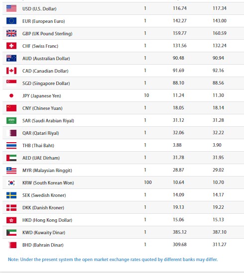 काठमाडौं । नेपाल राष्ट्र बैंकको अनुसार आज एक अमेरिकि डलरको खरिददर ११६ रुपैयाँ ७४ पैसा र बिक्रिदर ११७ रुपैयाँ ३४ पैसा रहेको छ।