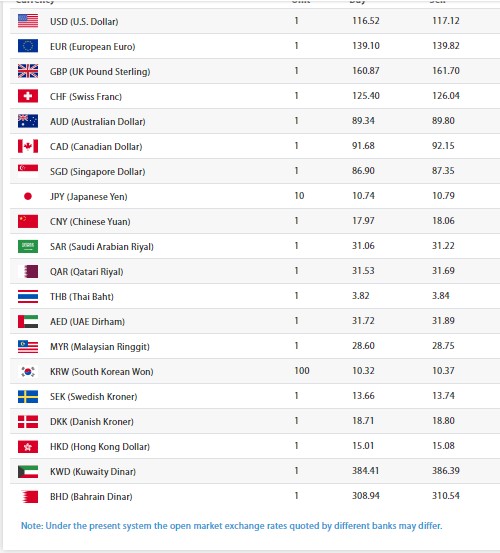 त्यस्तै, यूरोपियन यूरोको खरिददर १ सय ३९ रुपैयाँ ९६ पैसा र बिक्रिदर १४० रुपैयाँ ६९ पैसा रहेको छ । युरो पाउन्ड स्टिलिङको खरिददर १ सय ६१ रुपैयाँ ९५ पैसा र बिक्रिदर १६२ रुपैयाँ ७८ पैसा रहेको छ ।