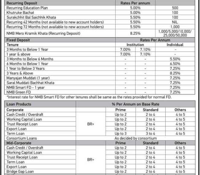 यस्तो छ एनएमबि बैंकले सार्वजनिक गरेको नयाँ ब्याजदर