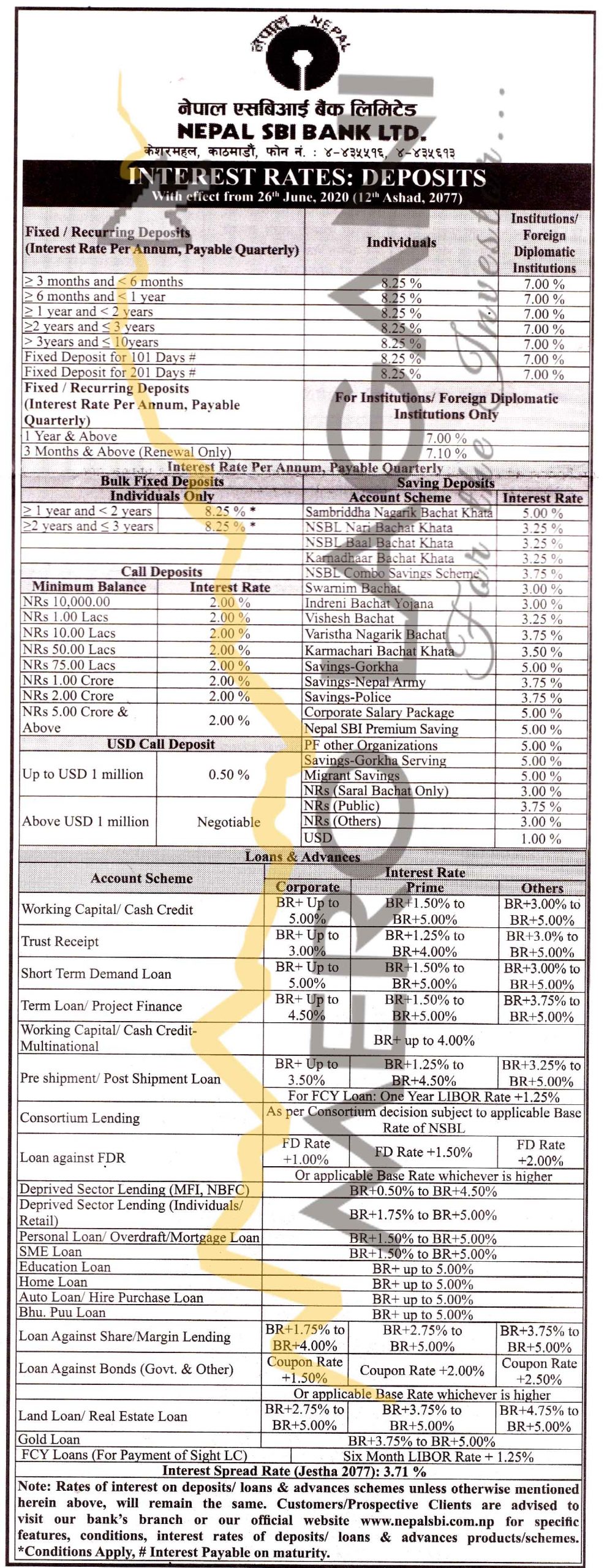 यस्तो छ नेपाल एसबीआई बैंकले सार्वजनिक गरेको नयाँ ब्याजदर