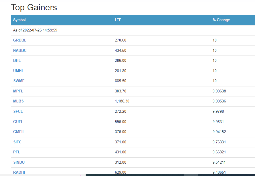 आज सकारात्मक सर्किट लाग्नेहरुमा क्रमश नारायणी डभेलपमेन्ट बैंक, मल्टीपर्पस फाइनान्स, सूर्योदय वमी लघुवित्त, ग्रिन डेभलपमेन्ट बैंक, युनाइटेड मोदी हाइड्रोपावर, मानुसी लघुवित्त र बलेफी हाइड्रोपावर छन् । त्यस्तै सर्किटकै क्रममा रहेका अन्य कम्पनीहरु समृद्धि फाइनान्स, गोर्खाज फाइनान्स, गुह्हेश्वरी मर्चेन्ट, श्री इन्भेष्टमेन्ट, पोखरा फाइनान्स राधि विद्युत छन् ।