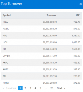 आज हिमालयन डिष्टिलरीले ३ करोड ६८ लाख बराबरको शेयर कारोबार गरेको छ । साथै लाइफ इन्स्योरेन्स कर्पाेरेशन लिमिटेडको ३ करोड १३ लाख रुपैयाँको शेयर कारोबार भएको छ । यसैगरी सिटिजन इन्भेष्टमेन्ट ट्रष्टले ३ करोड २२ हजार रुपैयाँको शेयर कारोबार गरेको छ ।