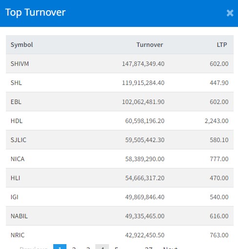 काठमाडौं । आज पनि २६ अंकले घटेर २,१०० को विन्दुमा कायम भएको छ । आज १८ कम्पनीको शेयर मुल्य बढेको छ भने १८९ कम्पनीको शेयर मुल्य घटेको छ । आज दिनभरिमा २६६ कम्पनीको ६८ लाख ६० हजार ४२ कित्ता शेयर किनबेच हुँदा २ अर्ब ५० करोड २८ लाखमाथिको शेयर कारोबार भएको छ । आज सबैभनदा धेरै शिवम् सिमेन्टको शेयर कारोबार भएको छ । आज कम्पनीको १४ करोड ७८ लाख रुपैयाँको शेयर कारोबार भएको छ । सोल्टी होटलको ११ करोड ९९ लाख रुपैयाँको शेयर कारोबार भएको छ ।