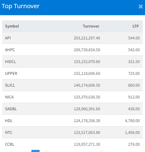 त्यस्तै, आज अरुण भ्याली हाइड्रोपावर कम्पनीको २० करोडमाथिको शेयर कारोबार भएको छ । हाइड्रोइलेक्ट्रिसिटीको १५ करोड ३१ लाख रुपैयाँको शेयर कारोबार भएको छ । अपर तामाकोशीको १५ करोड २१ लाख रुपैयाँको शेयर कारोबार भएको छ ।