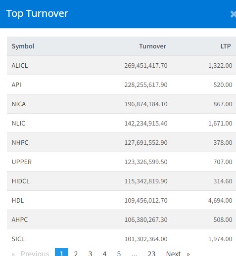 आज ५ अर्ब ३९ करोड ५६ लाख ७२ हजार रुपैयाँको शेयर कारोबार हुँदा सबैभन्दा धेरै एशियन लाइफ इन्स्योरेन्स कम्पनीको शेयर कारोबार भएको छ । कम्पनीको २६ करोड ९४ लाख रुपैयाँको शेयर कारोबार भएको छ । कम्पनीको शेयर मुल्य १३ सय २२ रुपैयाँ रहेको छ ।