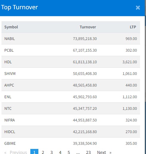 प्राइम कमर्सियल बैंकको ६ करोड ७१ लाख रुपैयाँको शेयर कारोबार भएको छ । हिमालयन डिष्टिलरीको ६ करोड १८ लाख रुपैयाँको शेयर कारोबार भएको छ । शिवम् सिमेन्टको ५ करोडमाथिको शेयर कारोबार भएको छ ।