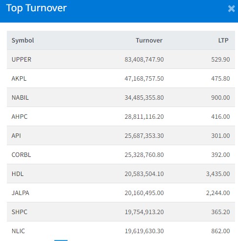 त्यस्तै, अरुण कावेली पावरको ४ करोड ७१ लाख रुपैयाँको शेयर कारोबार भएको छ । नविल बैंकको ३ करोट ४४ लाख रुपैयाँको शेयर कारोबार भएको छ । अरुण भ्याली हाइड्रोपावरको २ करोड ८८ लाख रुपैयाँको शेयर कारोबार भएको छ । अपि पावरको २ करोड ५६ लाख रुपैयाँको शेयर कारोबार भएको छ ।
