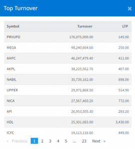 साथै अरुण भ्यालीले ४ करोड ६२ लाख रुपैयाँको शेयर कारोबार गरेको छ । अरुण कावेलीले ३ करोड ८२ लाखको शेयर कारोबार गरेको छ भने नबिल बैंकको ३ करोड ५७ हजार रुपैयाँको शेयर कारोबार भएको छ । साथै अप्पर तामाकोशिको भने २ करोड ९९ लाख रुपैयाँको शेयर कारोबार भएको छ ।