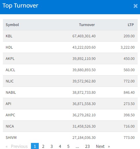 आज १ अर्ब ४७ करोड २६ लाख रुपैयाँको शेयर कारोबार हुँदा सबैभन्दा धेरै कुमारी बैंकको शेयर कारोबार भएको छ । बैंकको ६ करोड ७४ लाख रुपैयाँको शेयर कारोबार भएको छ । हिमालयन डिष्टिलरीको ४ करोड ३२ लाख रुपैयाँको शेयर कारोबार भएको छ ।