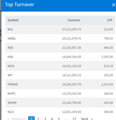 त्यस्तै, नविल बैंकको २ करोड ४१ लाख रुपैयाँको शेयर कारोबार भएको छ । रिडी पावर कम्पनीको २ करोड ३३ लाख रुपैयाँको शेयर कारोबार भएको छ । हिमालयन डिष्टिलरीको १ करोड ८६ लाख रुपैयाँको शेयर कारोबार भएको छ । एनआइसी एशिया बैंकको १ करोड ४४ लाख रुपैयाँको शेयर कारोबार भएको छ ।