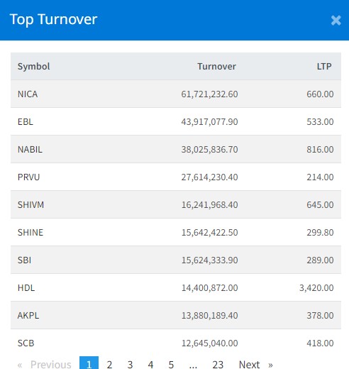 यी हुन् आज टप टेन कारोबार भएका कम्पनी