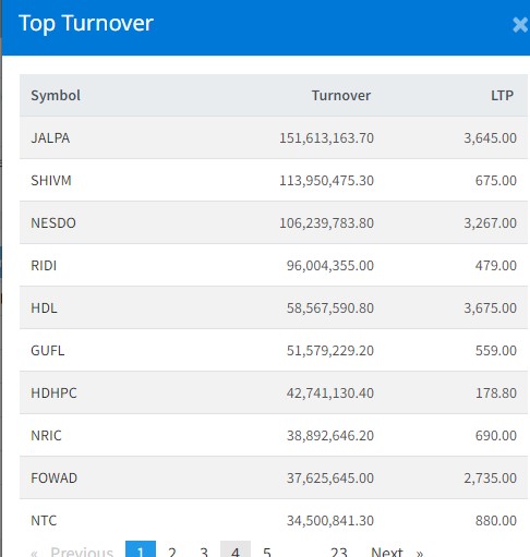त्यस्तै, शिवम् सिमेन्टको ११ करोड ३९ लाख रुपैयाँको शेयर कारोबार भएको छ । नेष्डो समृद्ध लघुवित्त वित्तीय संस्थाको १० करोड ६२ लाख रुपैयाँको शेयर कारोबार भएको छ । रिडी पावर कम्पनीको ९ करोड ६० लाख रुपैयाँको शेयर कारोबार भएको छ ।