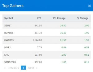 यसैगरी आज बिओके म्युचुअल फन्डका लगानीकर्ताले पनि धेरै कमाएका छन् । कम्पनीको शेयर १ दशमलब ९६ प्रतिशतले बृद्धि हुँदा प्रति शेयर मूल्य भने ८३७ रुपैयाँ १० पैसा कायम भएको छ । साथै गुडविल फाइनान्स लिमिटेडको म्युचुअल फन्डको मूल्य पनि बढेको छ । कम्पनीको शेयर १ दशमलव ९५ प्रतिशतले बृद्धि हुँदा प्रति शेयर मूल्य भने ११२४ रुपैयाँ कायम भएको छ ।