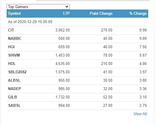 नागरिक लगानी कोषका लगानीकर्ताले ९ दशमलव ९९ दरले कमाएका छन् भने नारायणी डेभलपमेन्ट बैंकका लगानीकर्ताले ९ दशमलव ८९ का दरले कमाएका छन् । नागरिक लगानी कोष, नारायणी डेभलपमेन्ट बैंक, हिमालय जनरल इन्स्योरेन्स, शिव्म सिमेन्ट्स, हिमालयन डिस्टिलरी, एसबिएल डिभेञ्चर २०८२, आशा लघुवित्त, नाडेप लघुवित्त, ग्लोबल आइएमई लघुवित्त, सबैको लघुवित्तका लगानीकर्ताहरूले सबैभन्दा धेरै कमाएका छन् ।