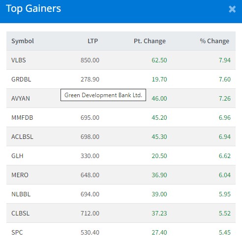 आज सबैभन्दा धेरै विजय लघुवित्तका लगानीकर्ताले कमाएका छन् । यी कम्पनीका लगानीकर्ताले ७ दशमलव ९४ प्रतिशतका दरले कमाएका छन् । ग्रिन डेभलपमेन्ट बैंकका लगानीकर्ताले ७ दशमलव ६० प्रतिशतका दरले कमाएका छन् । अभियान लघुवित्तका लगानीकर्ताले ७ दशमलव २६ प्रतिशतका दरले कमाएका छन् ।