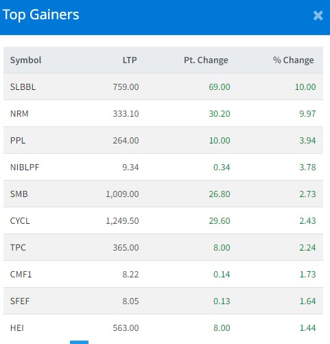 आज सबैभन्दा धेरै स्वरोजगार लघुवित्त विकास बैंकका लगानीकर्ताले कमाएका छन् । आज यस कम्पनीक ालगानीकर्ताले १० प्रतिशतका दरले कमाएका हुन् । नेपाल रिपब्लिक मिडियाका लगानीकर्ताले ९ दशमलव ९७ प्रतिशतका दरले कमाएका छन् । पिपुल्स पावरका लगानीकर्ताले ३ दशमलव ९४ प्रतिशतका दरले कमाएका हुन् ।