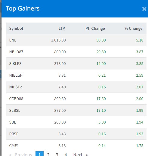 आज सबैभन्दा धेरै इमर्जिङ नेपालका लगानीकर्ताले कमाएका छन् । आज यस कम्पनीकर्ताले ५ दशमलव १८ प्रतिशतका दरले कमाएका छन् । नेपाल बैंक डिबेञ्चरका इकाईधनीले ३ दशलमव ८७ प्रतिशतका दरले कमाएका हुन् । सिक्लेस हाइड्रोपावर कम्पनीका लगानीकर्ताले ३ दशमलव ८५ प्रतिशतका दरले कमाएका हुन् । नविल ग्रोथ फण्डका इकाईधनीले २ प्रतिशतका दरले कमाएका छन् ।