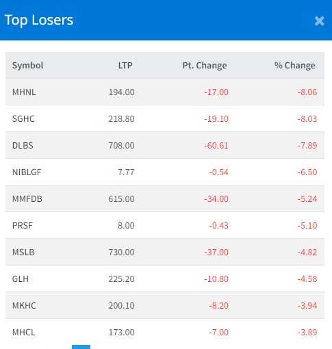 काठमाडौं । आज पनि शेयर बजारमा दोहोरो अंकको गिरावट आएको छ । आज शेयर बजार नेप्से परिसूचक २० दशमलव ३१ अंकले घटेर २,०२५ दशमलव १२ को विन्दुमा कायम भएको छ । आज ३४ कम्पनीको शेयर मुल्य बढेको छ भने आज १८५ कम्पनीको शेयर मुल्य घटेको छ । हिजो पनि घटेको बजारमा आज पनि गिरावट नै कायम भएको हो ।