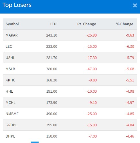 मकर जितुमाया हाइड्रोपावरका लगानीकर्ताले गुमाएका छन् । आज यस कम्पनीका लगानीकर्ताले ९ दशलमव ६३ प्रतिशतका दरले गुमाएका छन् ।