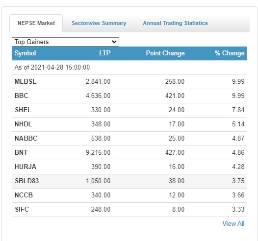 त्यस्तै, सिंगटी हाईड्रोपावर, नेपाल हाईड्रो डेभलपर, नारायणी डेभलपमेन्ट बैंक, बोर्टलर्स नेपाल (तराई), हिमालयन उर्जा विकास, एसबिएल डिभेञ्चर २०८३, नेपाल के्रडिट एण्ड कर्मशीयल बैंक र श्री इन्भेष्टमेन्ट फाइनान्सका लगानीकर्ताले सर्वाधिक कमाएका छन् ।