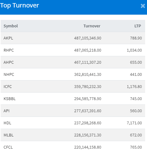 त्यस्तै, रिडी हाइड्रोपावर कम्पनीको ४८ करोड ७० लाख रुपैयाँको शेयर कारोबार भएको छ । अरुण भ्याली हाइड्रोपावर कम्पनीको ४६ करोड ७१ लाख रुपैयाँको शेयर कारोबार भएको छ । नेशनल हाइड्रोपावर कम्पनीको ३६ करोड २८ लाख रुपैयाँको शेयर कारोबार भएको छ । आइसीइफसी फाइनान्स कम्पनीको ३५ करोड ९७ लाख रुपैयाँको शेयर कारोबार भएको छ ।
