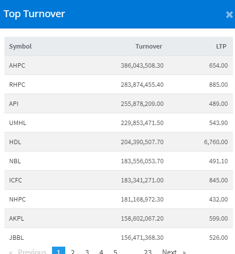 आज सबैभन्दा धेरै अरुण भ्याली हाइड्रोपावरको शेयर कारोबार भएको छ । कम्पनीको ३८ करोड ६० लाख रुपैयाँको शेयर कारोबार भएको छ । रिडि हाइड्रोपावर कम्पनीको २८ करोड ३८ लाख रुपैयाँको शेयर कारोबार भएको छ । त्यस्तै, अपि पावर कम्पनीको २५ करोड ५८ लाख रुपैयाँको शेयर कारोबार भएको छ । यूनाइटेड मोदी हाइड्रोपावर कम्पनीको २२ करोड ९८ लाख रुपैयाँको शेयर कारोबार भएको छ ।