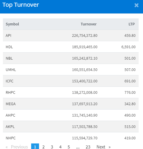 काठमाडौं । आज दिनभरिमा २२९ वटा कम्पनीको ९८ लाख ९४ हजार ४७८ कित्ता शेयर कारोबार हुँदा ५ अर्ब २ करोड ८५ लाख ५५ हजार रुपैयाँको शेयर कारोबार भएको छ । आज सबैभन्दा धेरै अपि पावर कम्पनीको कारोबार भएको छ । कम्पनीको २२ करोड ६७ लाख रुपैयाँको शेयर कारोबार भएको छ ।