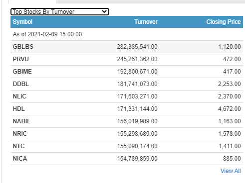 हिमालयन डिस्टीलरी र नेपाल लाइफको १७ करोडमाथिको शेयर करोबार भएको छ । नविल बैंक, नेपाल पुनर्बीमा कम्पनी, नेपाल टेलिकम र एनआइसी एशिया बैंकको १५ करोडमाथिको कारोबार भएको छ ।