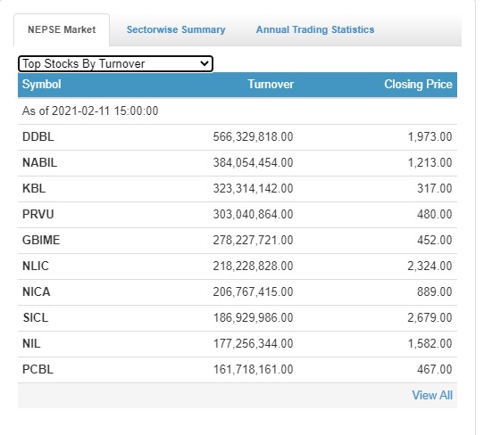 त्यस्तै, कुमारी बैंक, प्रभु बैंक, ग्लोबल आइएमई बैंक, नेपाल लाइफ, एनआईसी एशिया बैंक, शिखर इन्स्योरेन्स, नेको इन्स्योरेन्स र प्राईम कर्मसीयल बैंकको सर्वाधिक कारोबार भएको छ ।