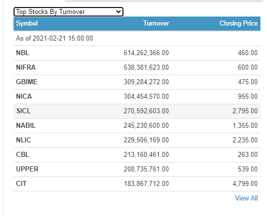 एनआइसी एशिया बैंकको ३० करोड ४४ लाख रुपैयाँभन्दा बढीको शेयर कारोबार भएको छ । शिखर इन्स्योरेन्स कम्पनीको २७ करोड ५ लाखभन्दा बढीको शेयर कारोबार भएको छ ।