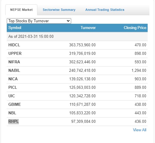 त्यस्तै, निफ्रा, नबिल बैंक, एनआईसी एशिया बैंक, प्रुडेन्सियल इन्स्योरेन्स, युनाईटेड इस्योरेन्स, ग्लोबल आइएमई बैंक, नेपाल बैंक, रसुवागढी हाईडोपावरको सर्वाधिक कारोबार भएको छ ।