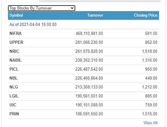 त्यसैगरी नेपाल पुनर्बीमा कम्पनीको २६ करोड १० लाख रुपैयाँको शेयर कारोबार भएको छ । आज कम्पनीको शेयर मुल्य ४ दशमलव ४० प्रतिशतले बढेको छ । नविल बैंकको २३ करोड ९३ लाख रुपैयाँको कारोबार भएको छ ।
