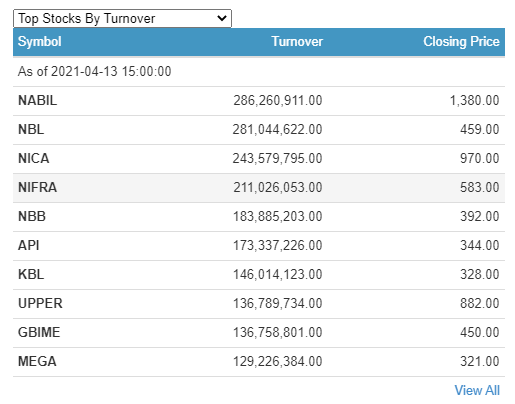 त्यस्तै, एनआइसी उशिया बैंकको २४ करोड ३५ लाख रुपैयाँको शेयर कारोबार भएको छ । निफ्राको २१ करोड १० लाख रुपैयाँको शेयर कारोबार भएको छ । नेपाल बङलादेश बैंकको १८ करोड ३८ लाख रुपैयाँको शेयर कारोबार भएको छ ।