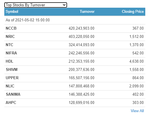 त्यसैगरी, नेपाल टेलिकमको ३२ करोड ४४ लाख रुपैयाँको शेयर कारोबार भएको छ । निफ्राको २४ करोड २२ लाख रुपैयाँको शेयर करोबार भएको छ । हिमालयन डिस्टिलरीको २१ करोड २३ लाख रुपैयाँको शेयर कारोबार भएको छ।