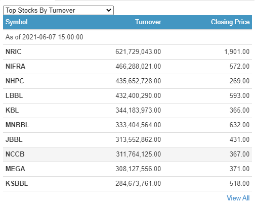 त्यस्तै, निफ्राको ४६ करोड ६२ लाख रुपैयाँको शेयर कारोबार भएको छ । नेशनल हाइड्रो पावर कम्पनीको ४३ करोड ५६ लाख रुपैयाँको शेयर कारोबार भएको छ । लुम्बिनी विकास बैंकको ४३ करोड २४ लाख रुपैयाँको शेयर कारोबार भएको छ ।