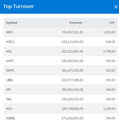 त्यस्तै, हिमालयन डिस्टीलरीको ४२ करोड ३ लाख रुपैयाँको शेयर कारोबार कम्पनीको कम्पनीको शेयर मुल्य २ सय ४३ रुपैयाँले बढेको छ । अरुण भ्याली हाइड्रो पावर कम्पनीको ३४ करोड ५५ लाख रुपैयाँको शेयर कारोबार भएको छ । नेशनल हाइड्रो पावर कम्पनीको ३४ करोड १४ लाख रुपैयाँको शेयर कारोबार भएको छ ।