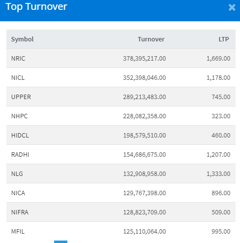नेपाल इन्स्योरेन्सको ३५ करोड २३ लाख रुपैयाँको शेयर कारोबार भएको छ । अपर तामाकोशीको २८ करोड ९२ लाख रुपैयाँको शेयर करोबार भएको छ ।