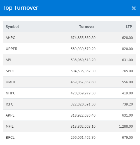 त्यस्तै, अपि पावर कम्पनीको ५३ करोड ८० लाख रुपैयाँको शेयर कारोबार भएको छ । सिनर्जी पावर कम्पनीको ५० करोड ५४ लाख रुपैयाँको शेयर कारोबार भएको छ । यूनाइटेड मोदी हाइड्रोपावर कम्पनीको ४५ करोड ९० लाख रुपैयाँको शेयर कारोबार भएको छ । नेशनल हाइड्रोपावर कम्पनीको ४२ करोड ८ लाख रुपैयाँको शेयर कारोबार भएको छ ।