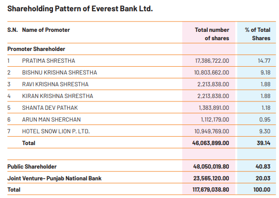 यी हुन् एभरेष्ट बैंकका ठूला शेयरधनी, कोसँग कति कित्ता ?