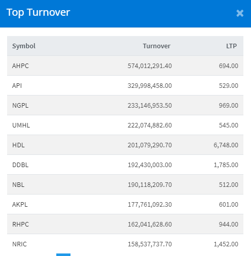 त्यस्तै, अपि पावर कम्पनीको ३२ करोड ९९ लाख रुपैयाँको शेयर कारोबार भएएको छ । ङादी ग्रुप पावर कम्पनीको २३ करोड ३१ लाख रुपैयाँको शेयर कारोबार भएको छ । यूनाइटेड मोदी हाइड्रोपावर कम्पनीको २२ करोड २० लाख रुपैयाँको शेयर कारोबार भएको छ । हिमालयन डिस्टीलरीको २० करोड १० लाख रुपैयाँको शेयर कारोबार भएको छ ।