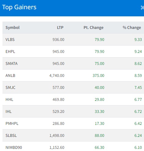 आज विजय लघुवित्त र इस्टर्न हाइड्रोपावरका शेयरधनीहरुले सर्वाधिक कमाए। यी दुवै कम्पनीको शेयरभाउ ९ प्रतिशत बढीले उकालो लागेको छ।