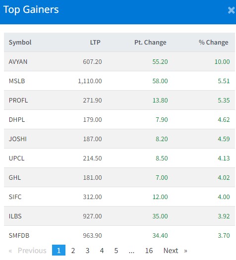 आज सबैभन्दा धेरै अभियान लघुवित्त वित्तीय संस्थाका लगानीकर्ताले कमाएका छन् । कम्पनीका लगानीकर्ताले १० प्रतिशतका दरले कमाएका हुन् । महुली लघुवित्त वित्तीय संस्थाका लगानीकर्ताले ५ दशमलव ५१ प्रतिशतका दरले कमाएका छन् । प्रोग्रेशिभ फाइनान्स कम्पनीका लगानीकर्ताले ५ दशमलव ३५ प्रतिशतका दरले कमाएका छन् । दिव्यश्वरी हाइड्रोपावर कम्पनीका लगानीकर्ताले ४ प्रशिततका दरले कमाएका छन् ।