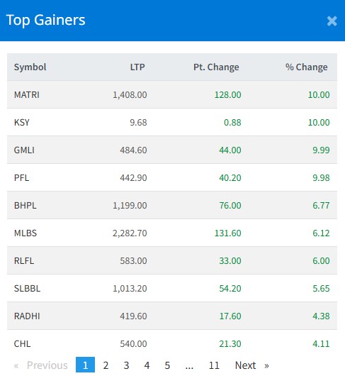 आज सबैभन्दा धेरै मातृभुमी लघुवित्त वित्तीय संस्था र कुमारी सबल योजनाका इकाईधनीले कमाएका छन् । आज यी दुई कम्पनीका लगानीकर्ता, इकाईधनीले १० प्रतिशतका दरले कमाएका हुन् । गार्डियन माइक्रो लाइफका लगानीकर्ताले ९ दशलमव ९९ प्रतिशतका दरले कमाएका छन् । पोखरा फाइनान्सका लगानीकर्ताले पनि ९ दशलमव ९८ प्रतिशतका दरले कमाएका छन् ।