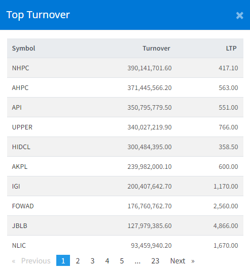 आज अप्पर तामाकोशीले ३४ करोडको कारोबार गरेको छ भने एचआइडिसिएलको ३० करोड रुपैयाँको कारोबार गरेको छ ।