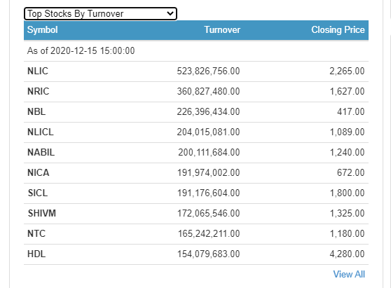 त्यस्तै, आज सबैभन्दा धेरै नेपाल लाइफ इन्स्योरेन्स कम्पनीको कारोबार भएको छ । कम्पनीको ५२ करोडमाथिको कारोबार भएको छ । त्यस्तै, नेपाल पुनर्बीमा कम्पनीको ३६ करोडमाथिको कारोबार भएको छ । त्यसैगरी नेपाल बैंकको २२ करोडमाथिको कारोबार भएको छ । नेशनल लाइफको २० करोड ४० लाख रुपैयाँको कारोबार भएको छ ।