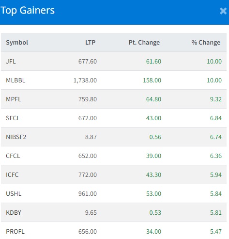 आज बजारमा ३ अर्ब ६ करोड २३ लाख रुपैयाँ बढीको कारोबार भएको छ। यो दिन २ कम्पनीको शेयरभाउ पोजिटिभ सर्किट लागेको छ। जानकी फाइनान्स र मिथिला लघुवित्तको शेयरभाउ १० प्रतिशतको बढोत्तरीका साथ पोजिटिभ सर्किट लागेको हो। मल्टीपर्पस फाइनान्सको शेयरभाउ ९ प्रतिशत बढीले बढेको छ।